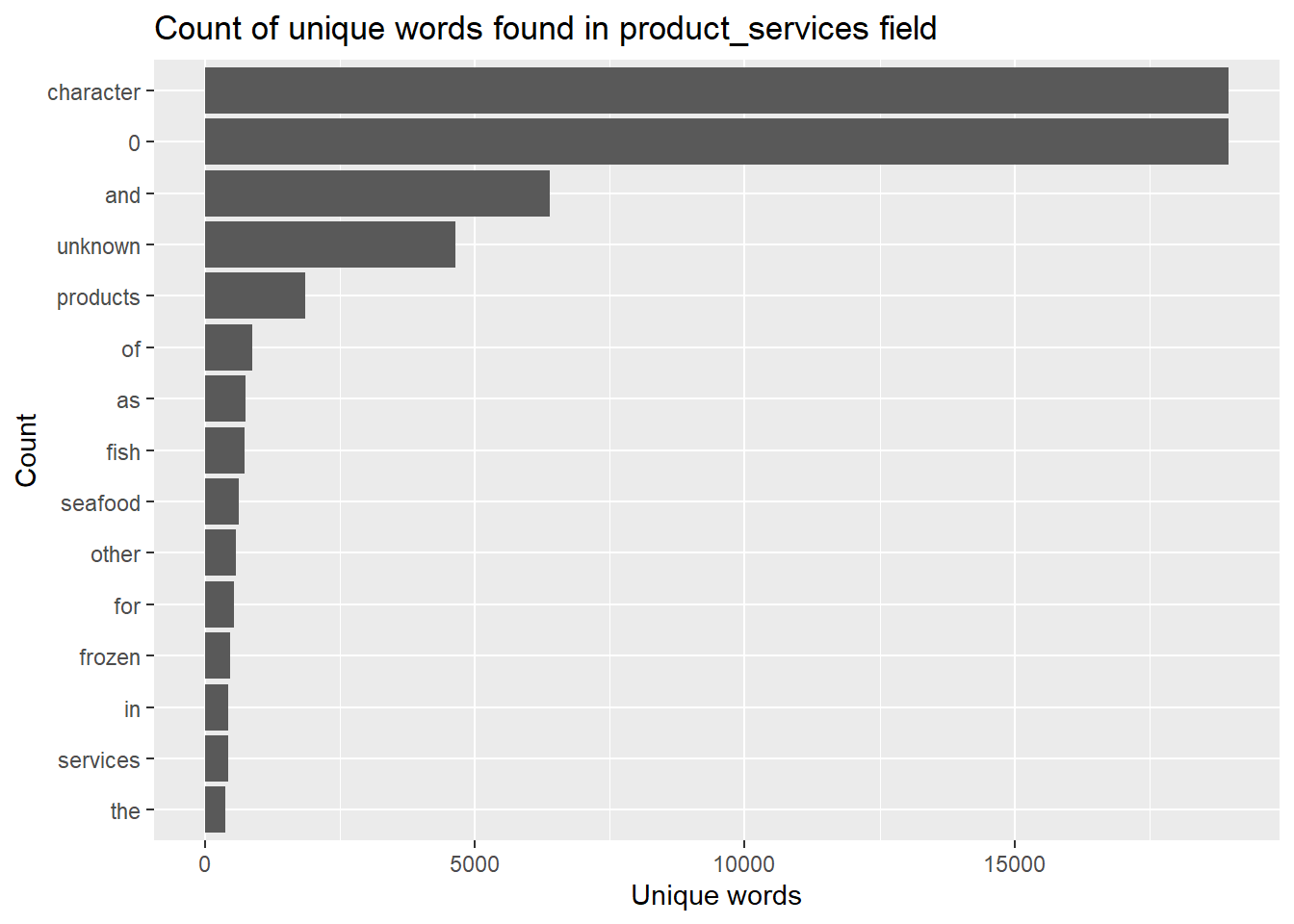 title = "Count of unique words found in product_services field")