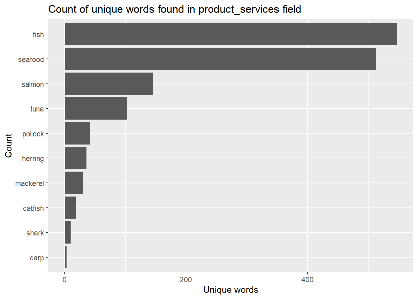 filter(word %in% c("seafood","fish","carp","catfish","herring","mackerel","pollock","salmon","shark","tuna")) %>%